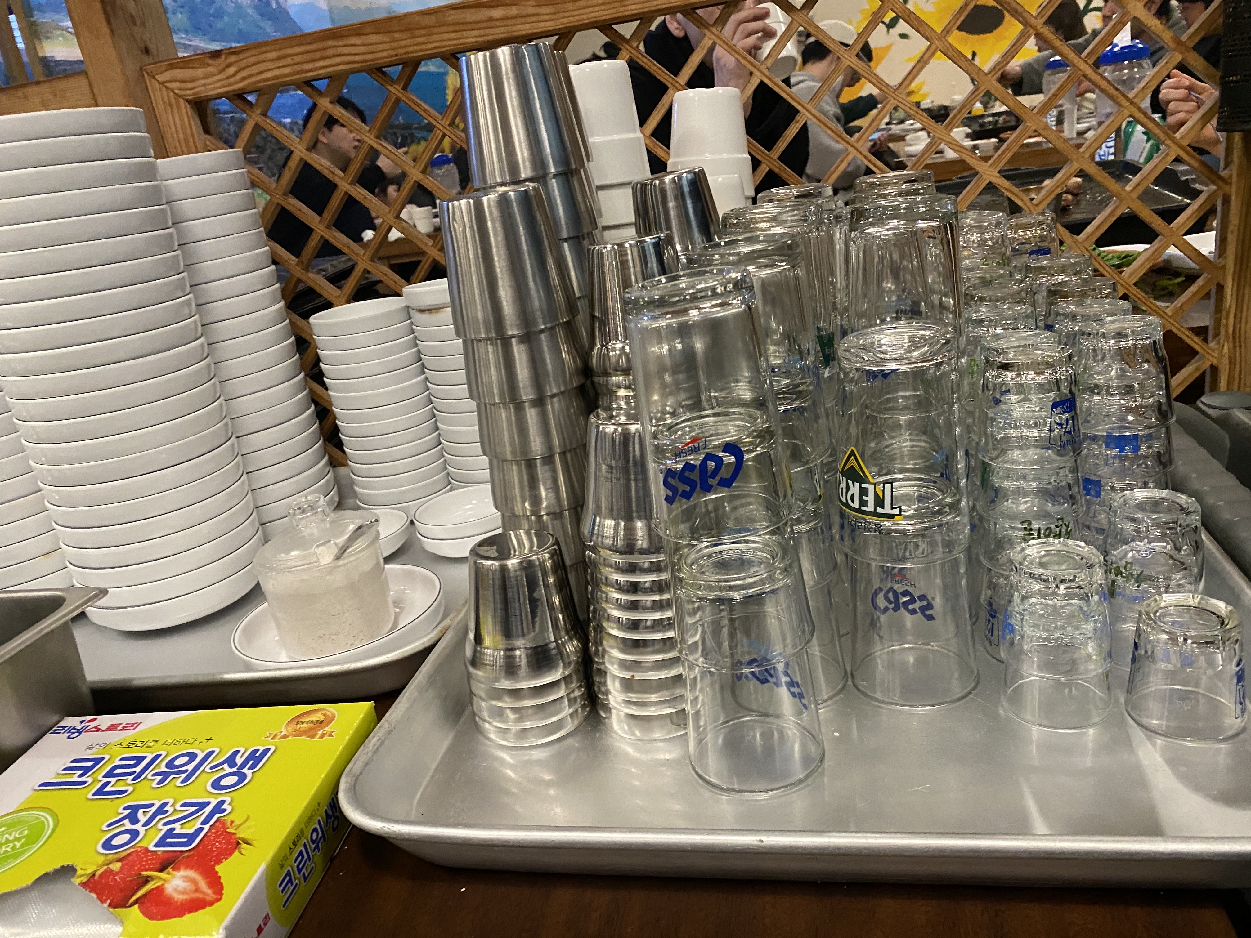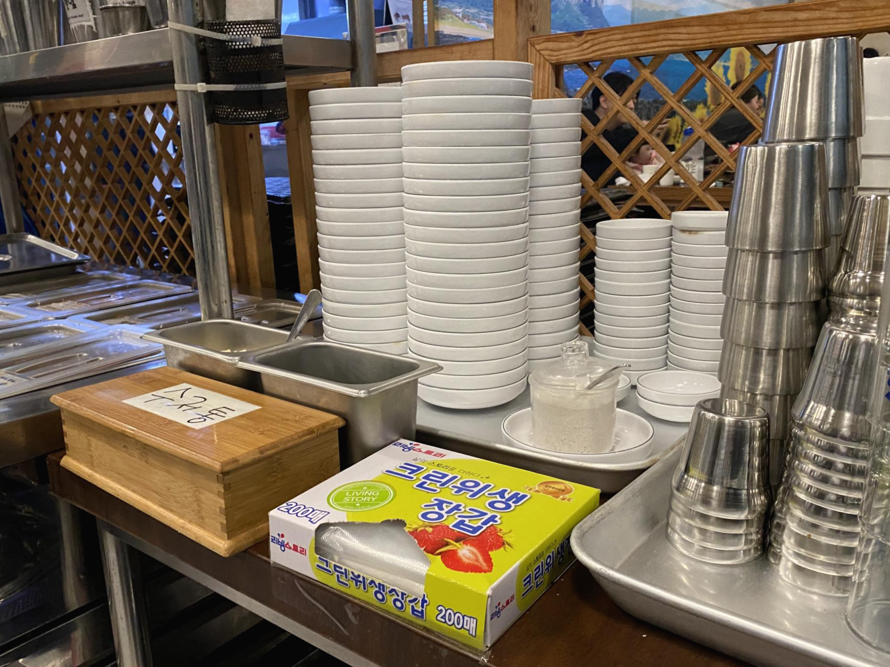 제주도 흑돼지 맛집 돈이랑은 직원들이 계속 돌아다니면서 고기를 구워주시는데 다들 어쩜 그렇게 말을 잘하시는지ㅋㅋ제 바로 뒤에 요렇게 식기들이 있었는데 직원분이 요기가 명당이라고 이렇게 편한 자리가 없다고🤣