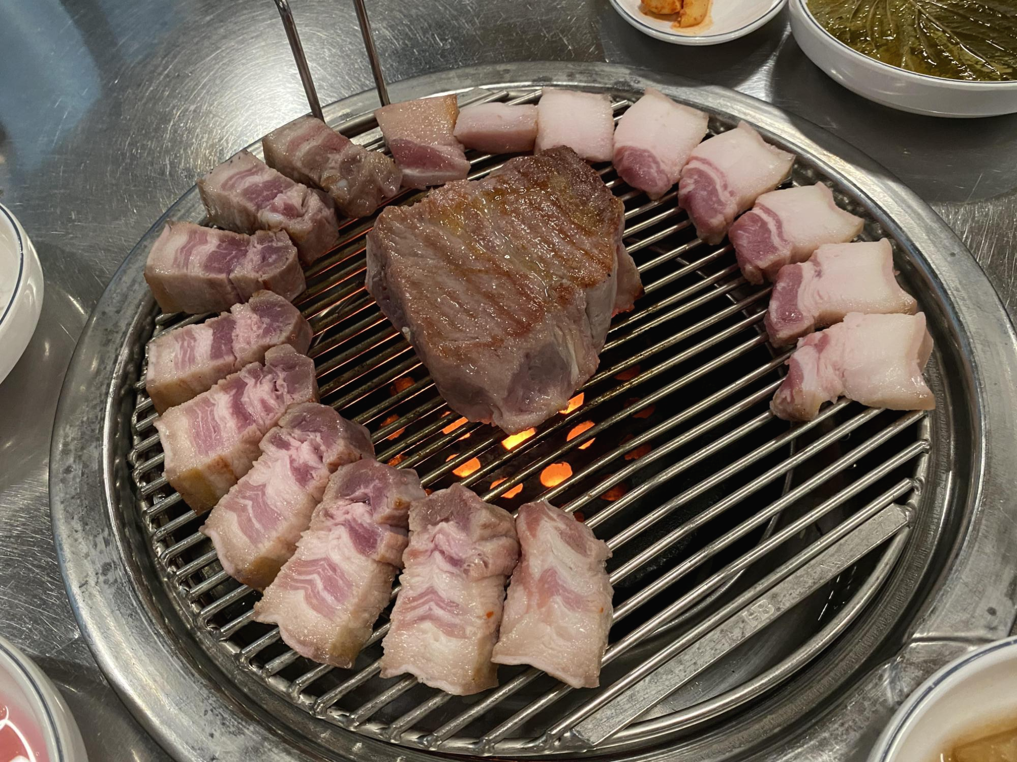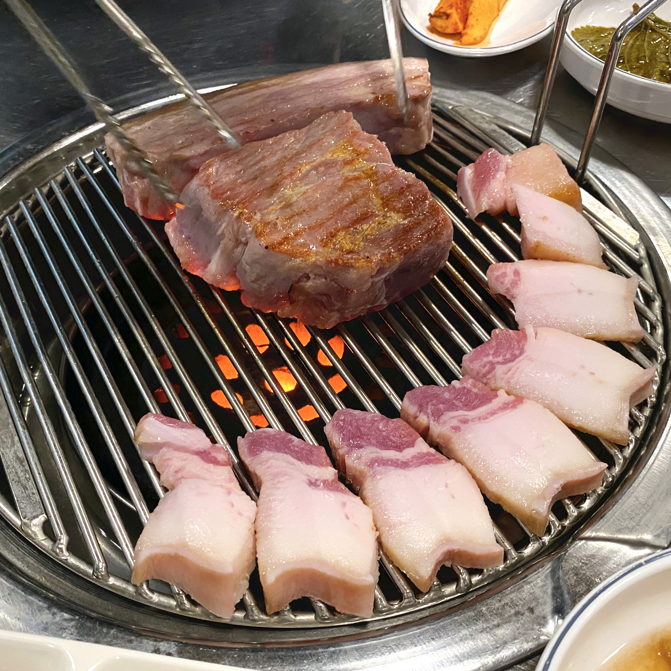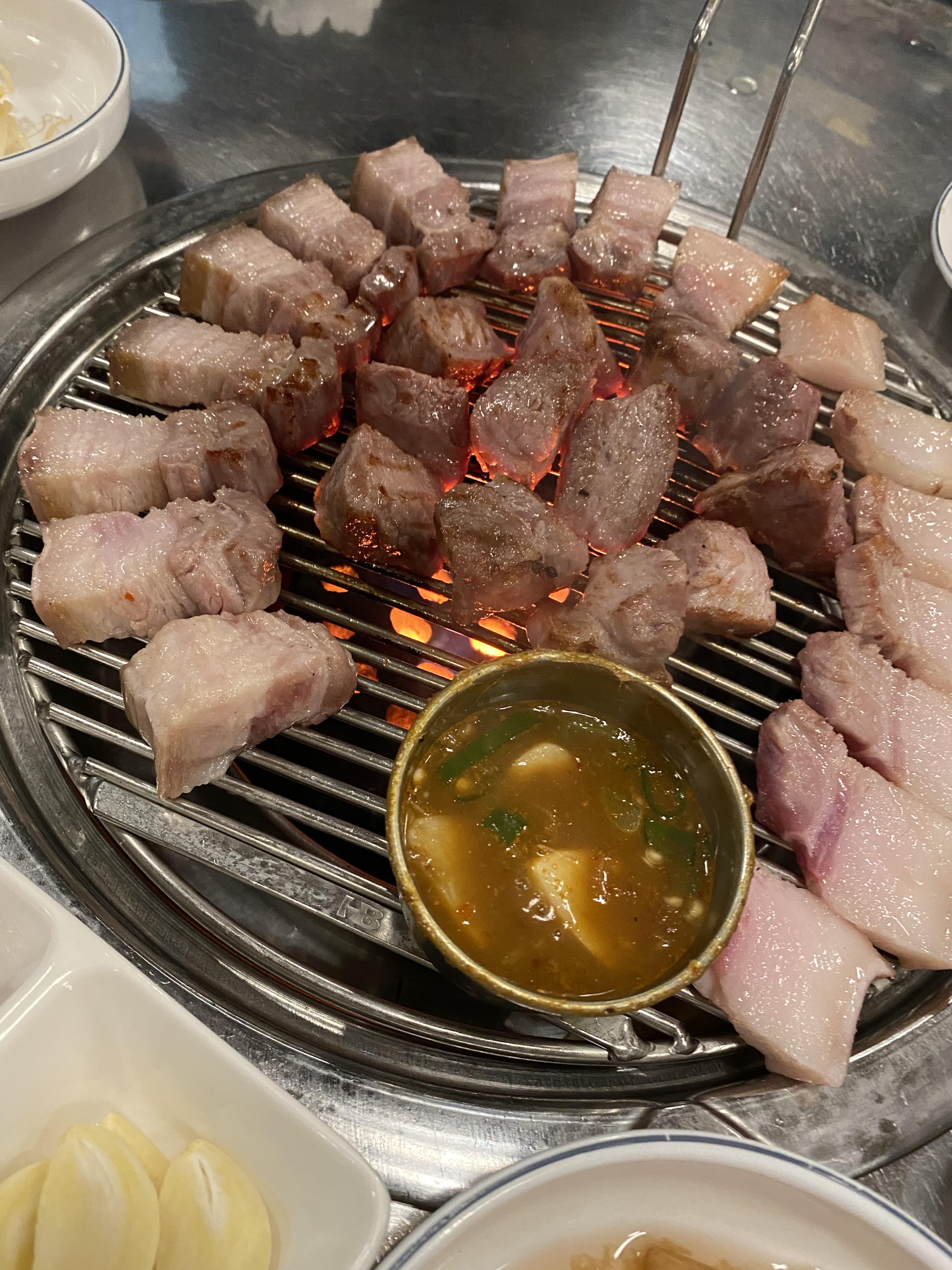예전에 경남 진주에서 들렀던 집이 비슷하게 했던 것 같아요. 거기에서 신선한 목살은 100% 안익히고 육즙있게 소고기처럼 먹어도 된다고 했었는데 여기가 비슷한 느낌! 너무 맛있었어요.