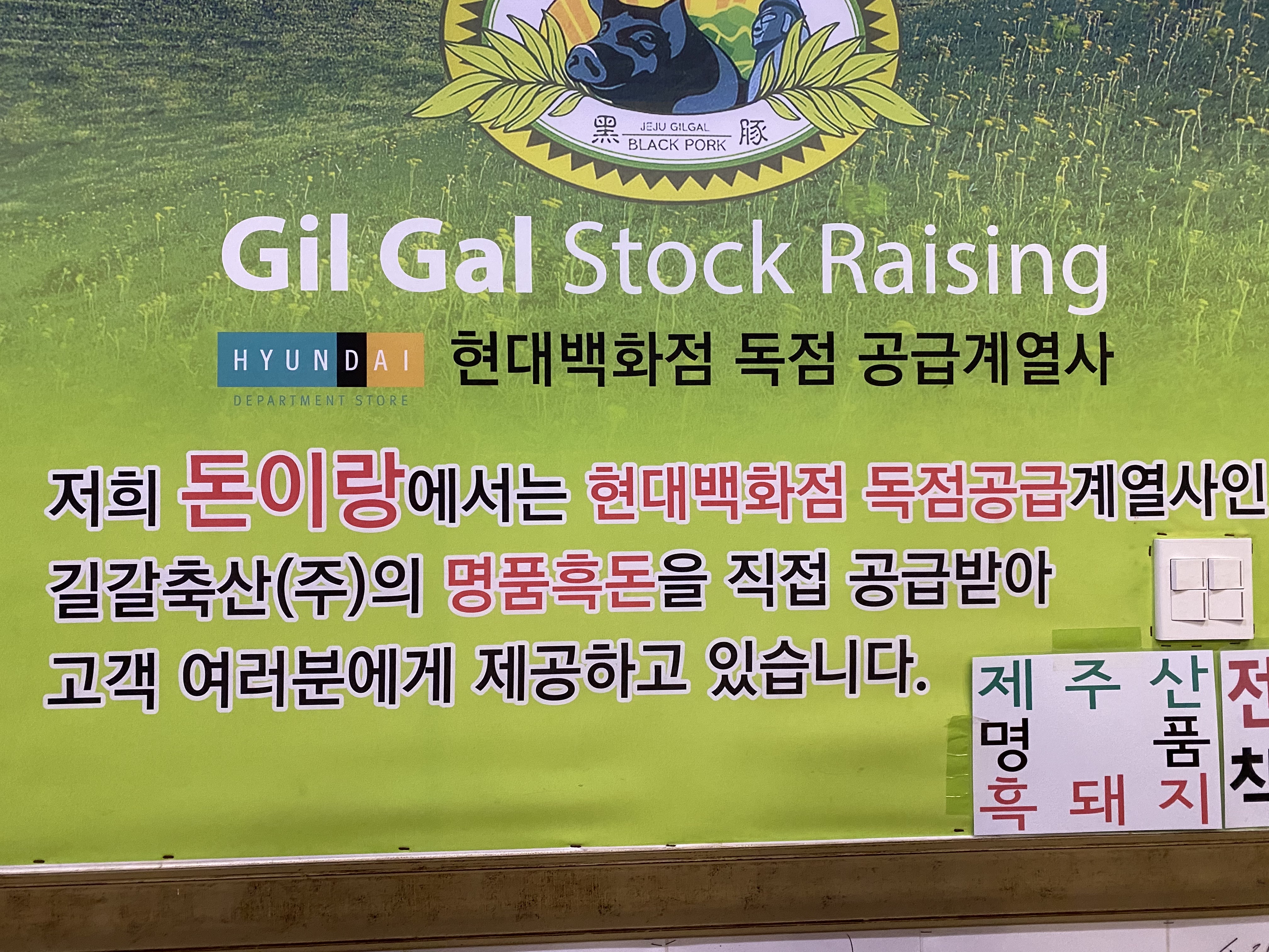 2층으로 올라가야해서 올라가보니 엄청나게 많은 싸인들이 반깁니다. 제주도 흑돼지 맛집 돈이랑이 단순히 방송을 타서 유명해진 것이 아니라 찐 맛집이라는 증거 같아서 설렜어요. 또 현대백화점에 독점으로 공급한다고 하니 신선함 역시 보증받은 것 아닐까 싶네용.