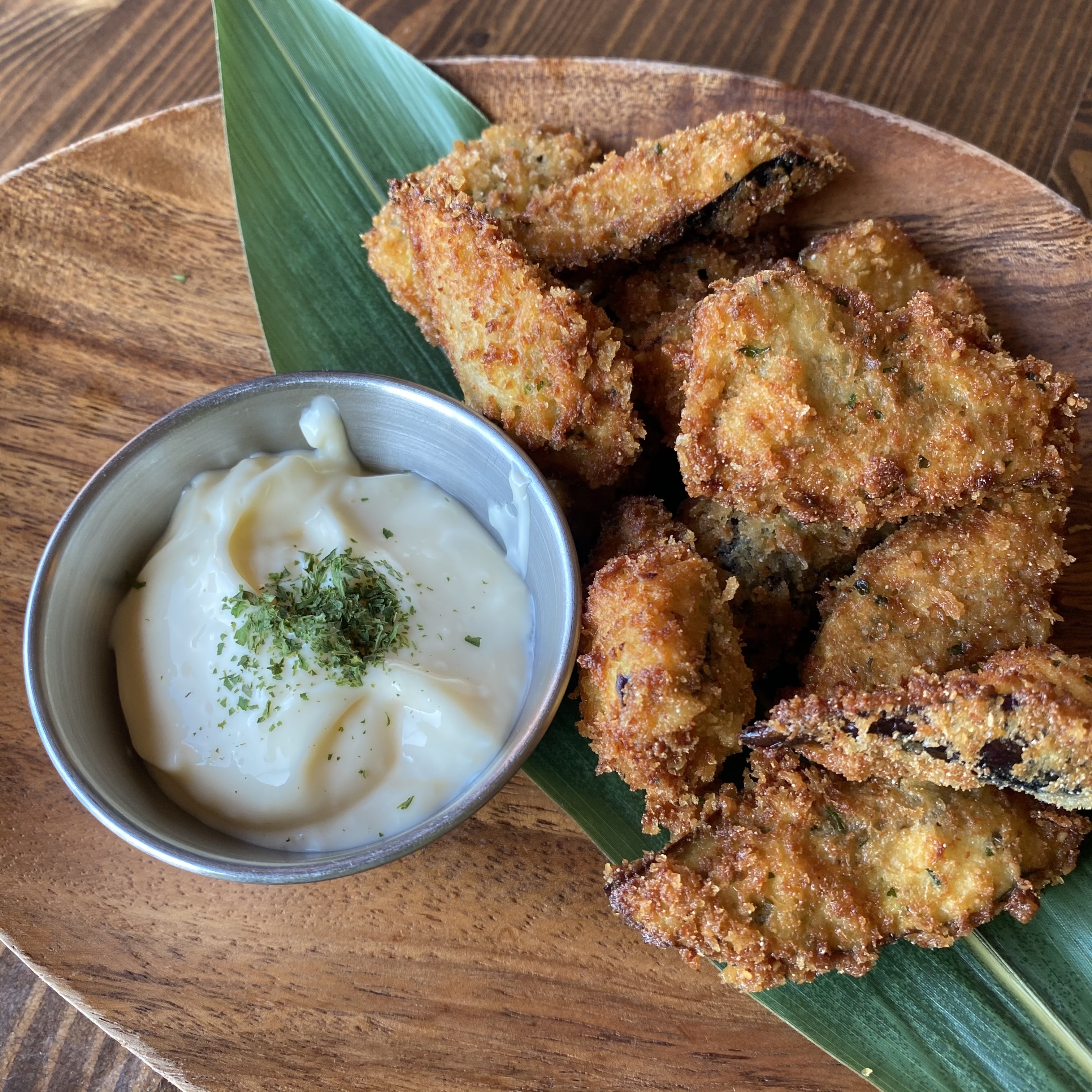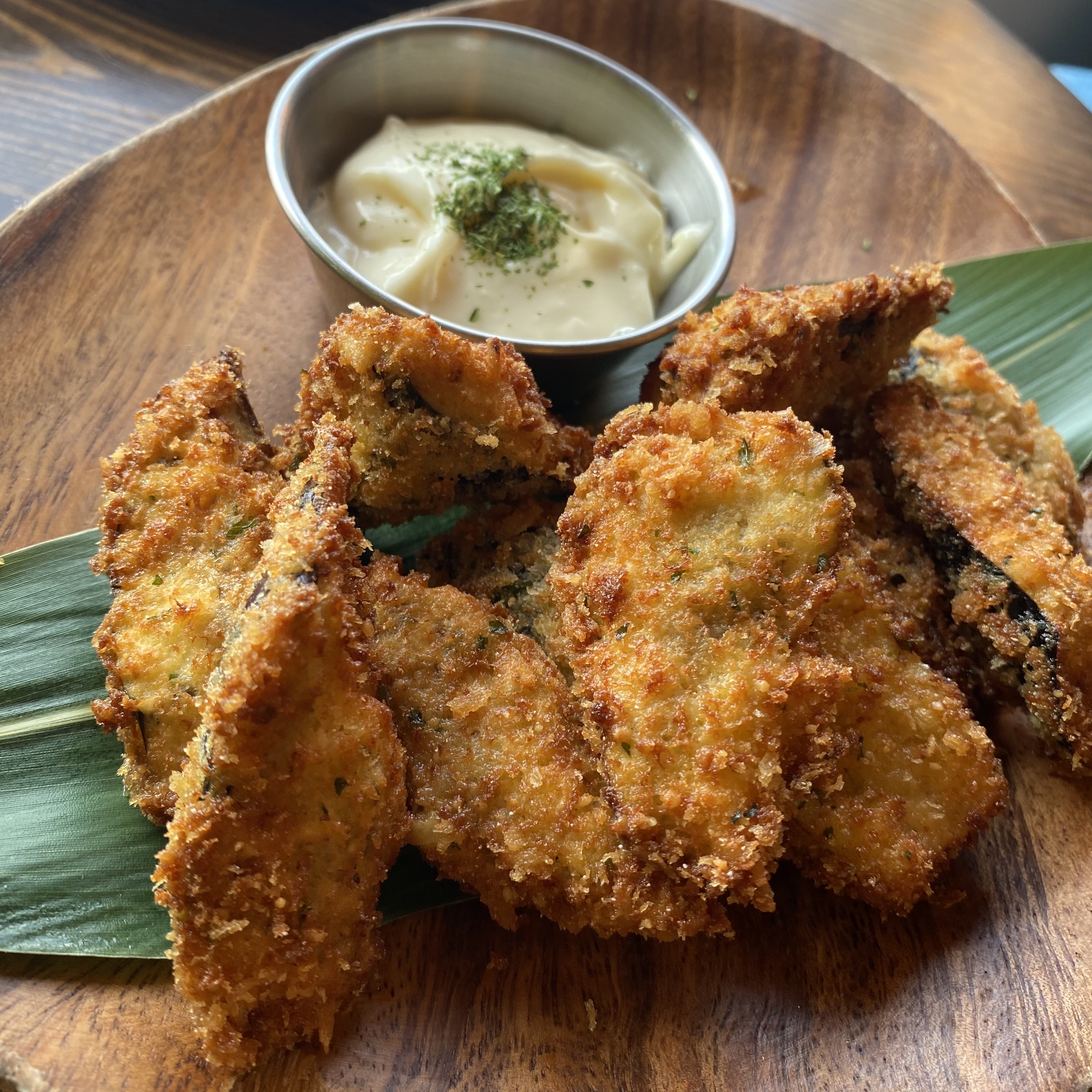 다른 글들을 보면 가지튀김을 그렇게 극찬을 하더라구요? 저는 치킨 빼고는 기름에 들어갔다 나온 음식을 좋아하지 않아서 혼자 정했다면 시키지 않았을 것 같은데 친구와 함께 있으니 시켜보기로 했어요.