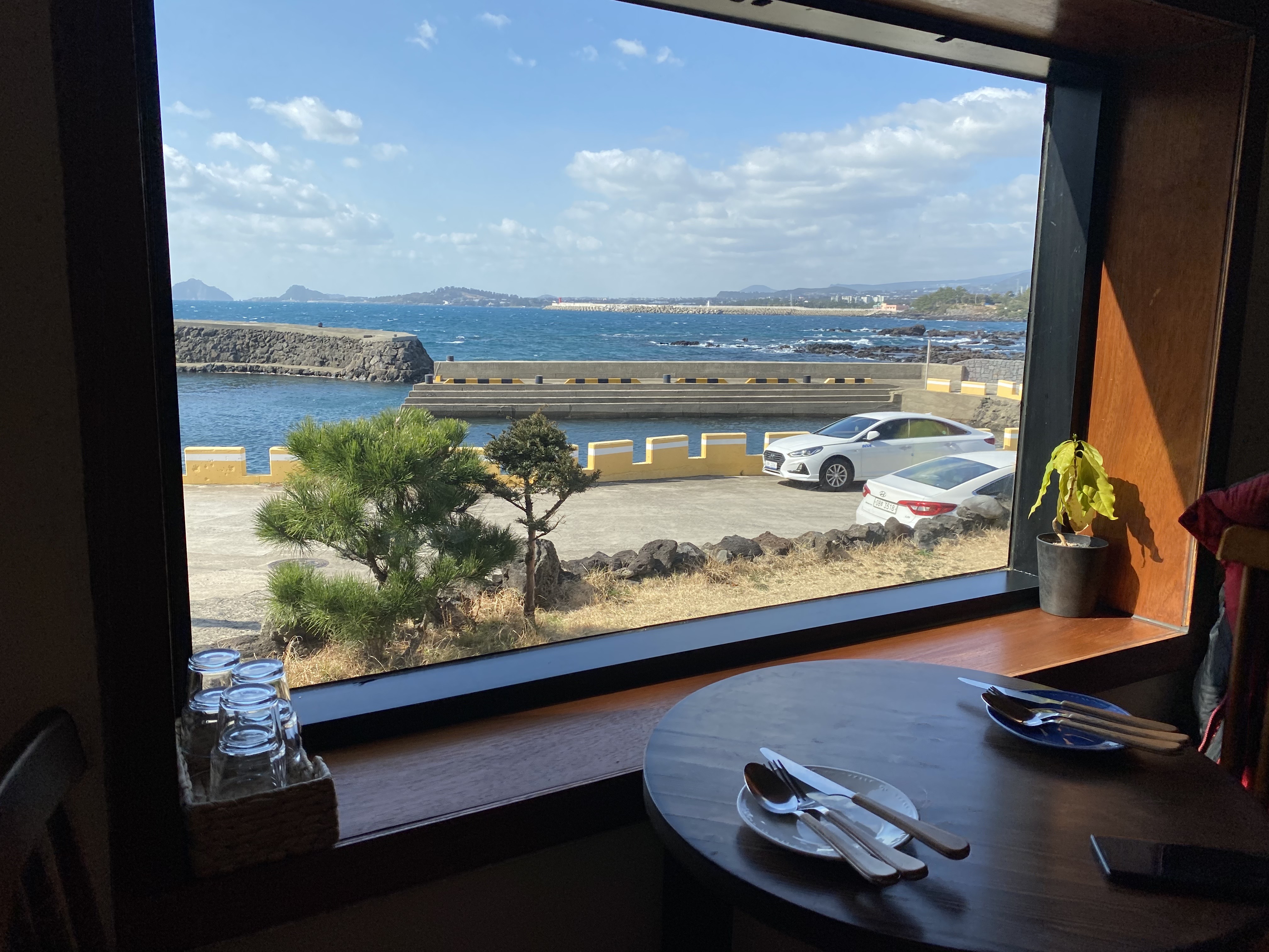 운좋게 창가쪽에 앉게 되었어요. 파도치는 바다를 바라보며 식사할 수 있어서 너무너무 좋았어요. 사실 이 날 바람이 많이 불었어요. 파란 바다가 넘실대는데 창 안에서는 조용하게 바라볼 수 있어서 좋더라구요.