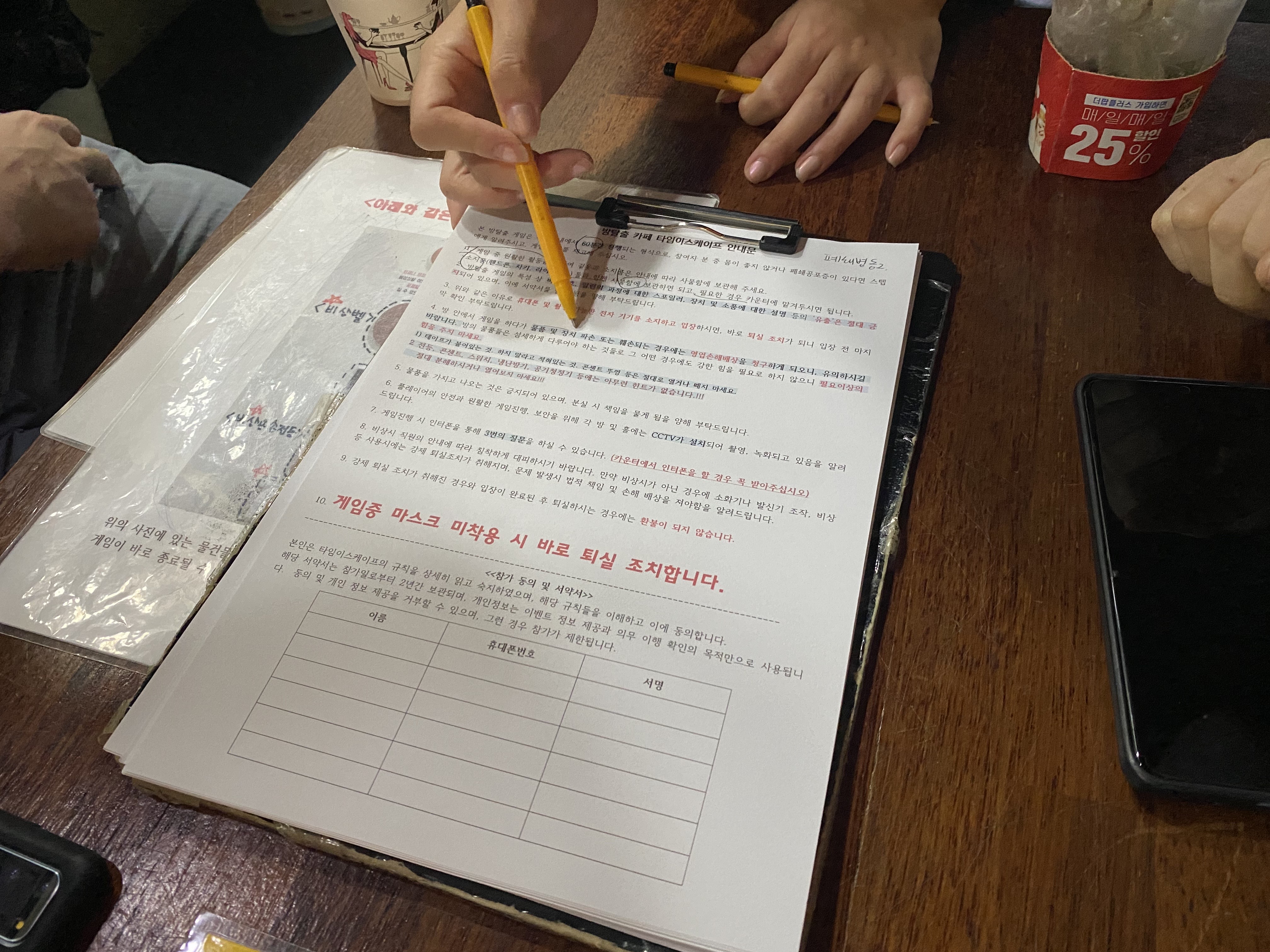 홀에 앉아있으면 주의사항을 알려주십니다.