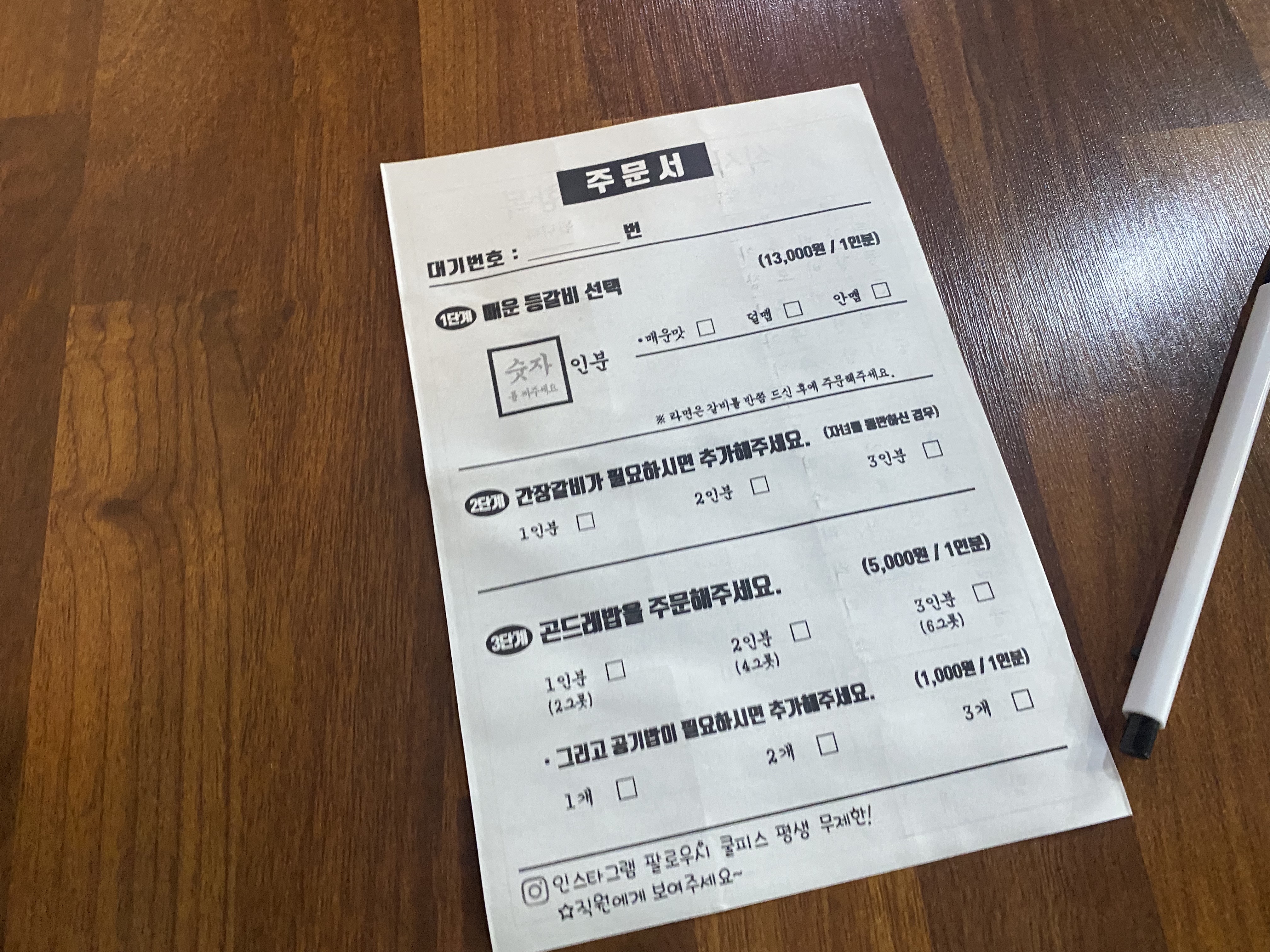 아마 2인분에 안맵, 곤드레밥 1인분(2그릇)