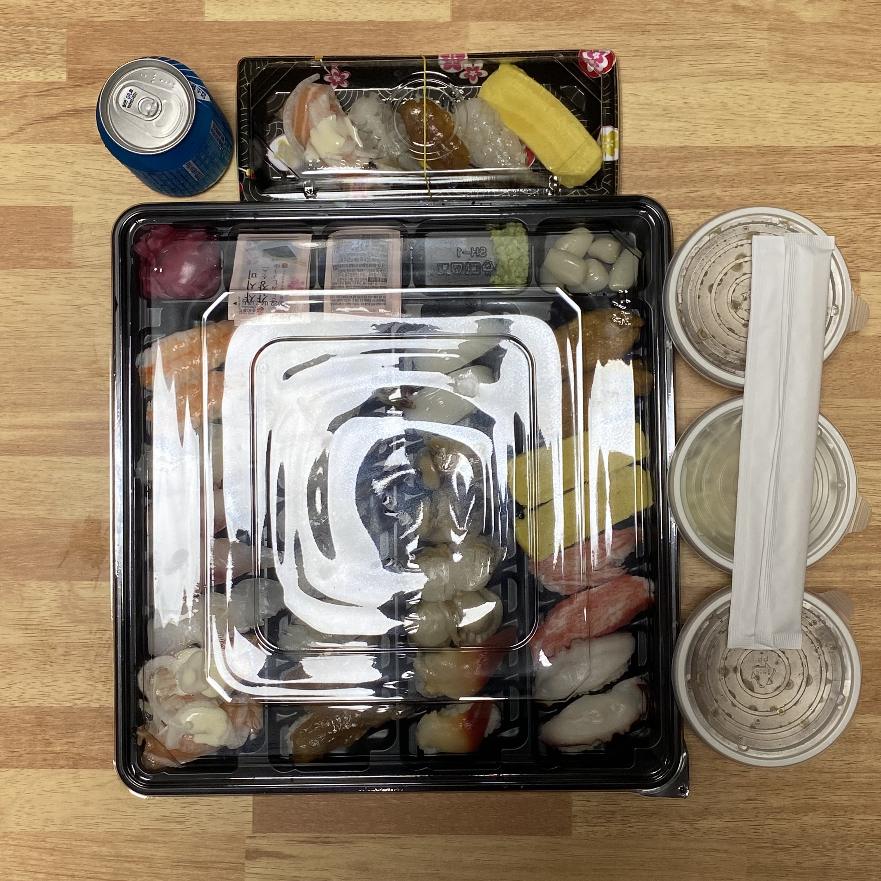 초밥과 짬뽕을 포장해서 가기로 했어요.