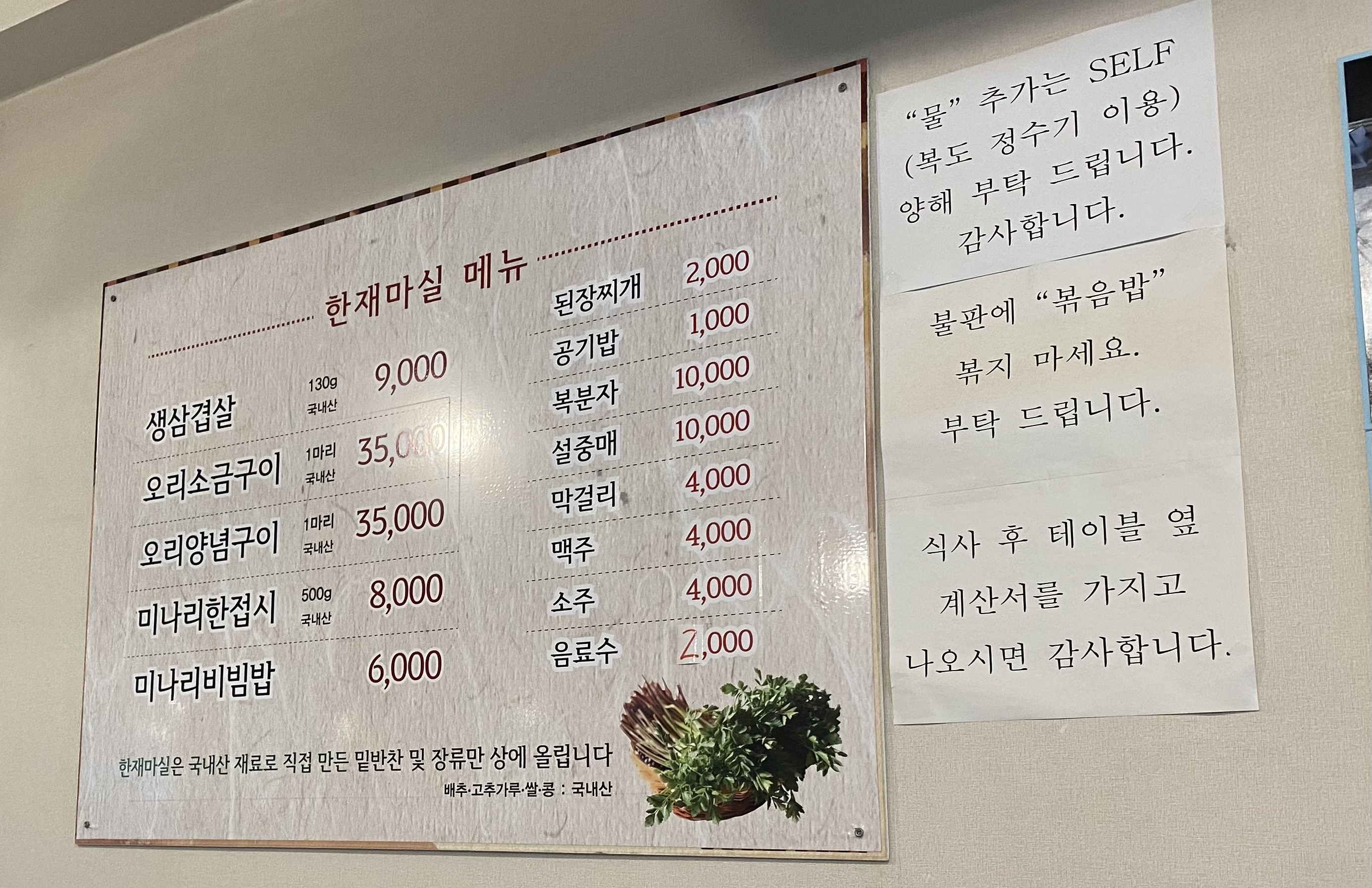 청도 미나리삼겹살 맛집 한재마실입니다!