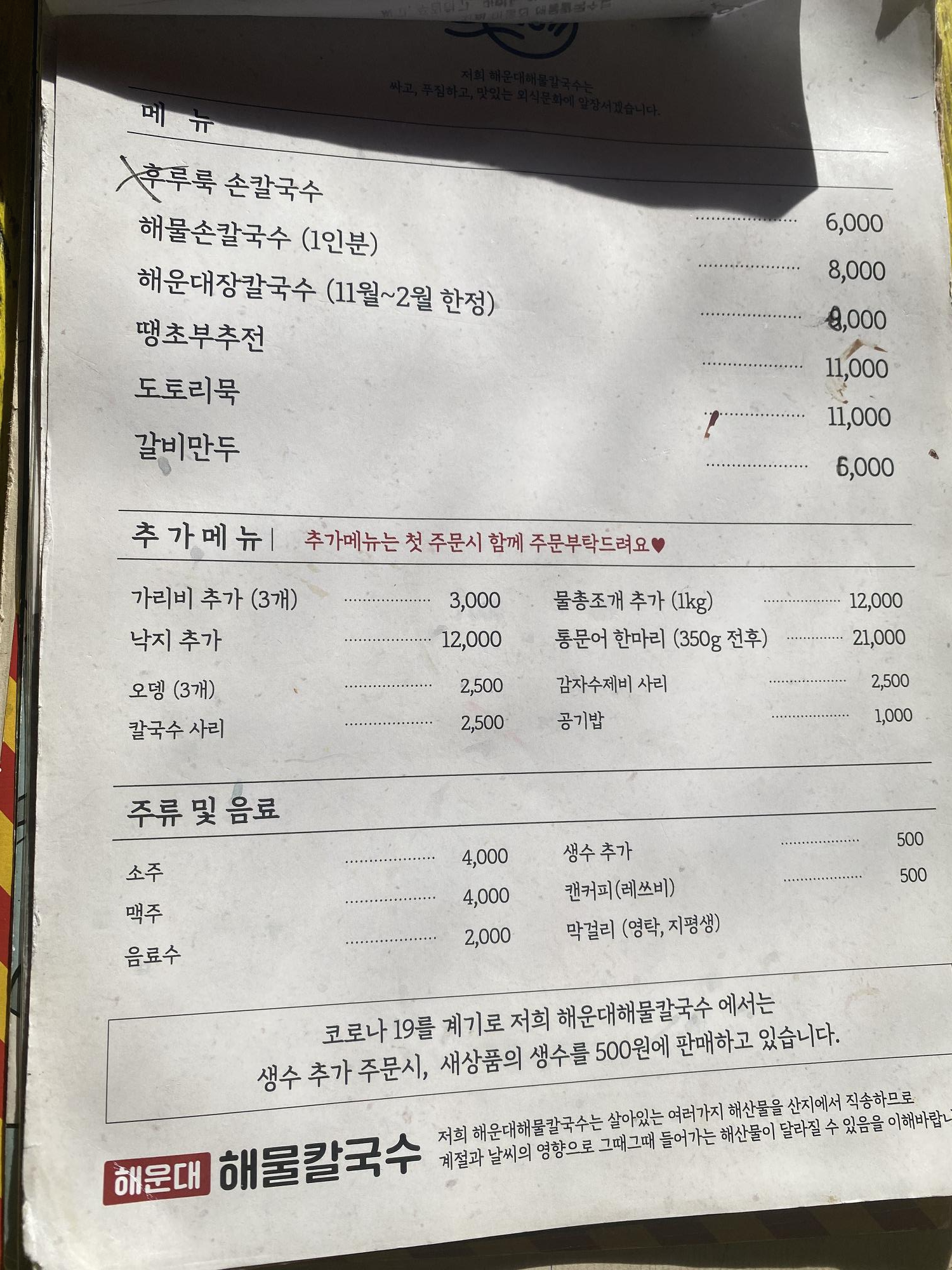 6월에 기장 해운대 해물칼국수 들렀을 땐