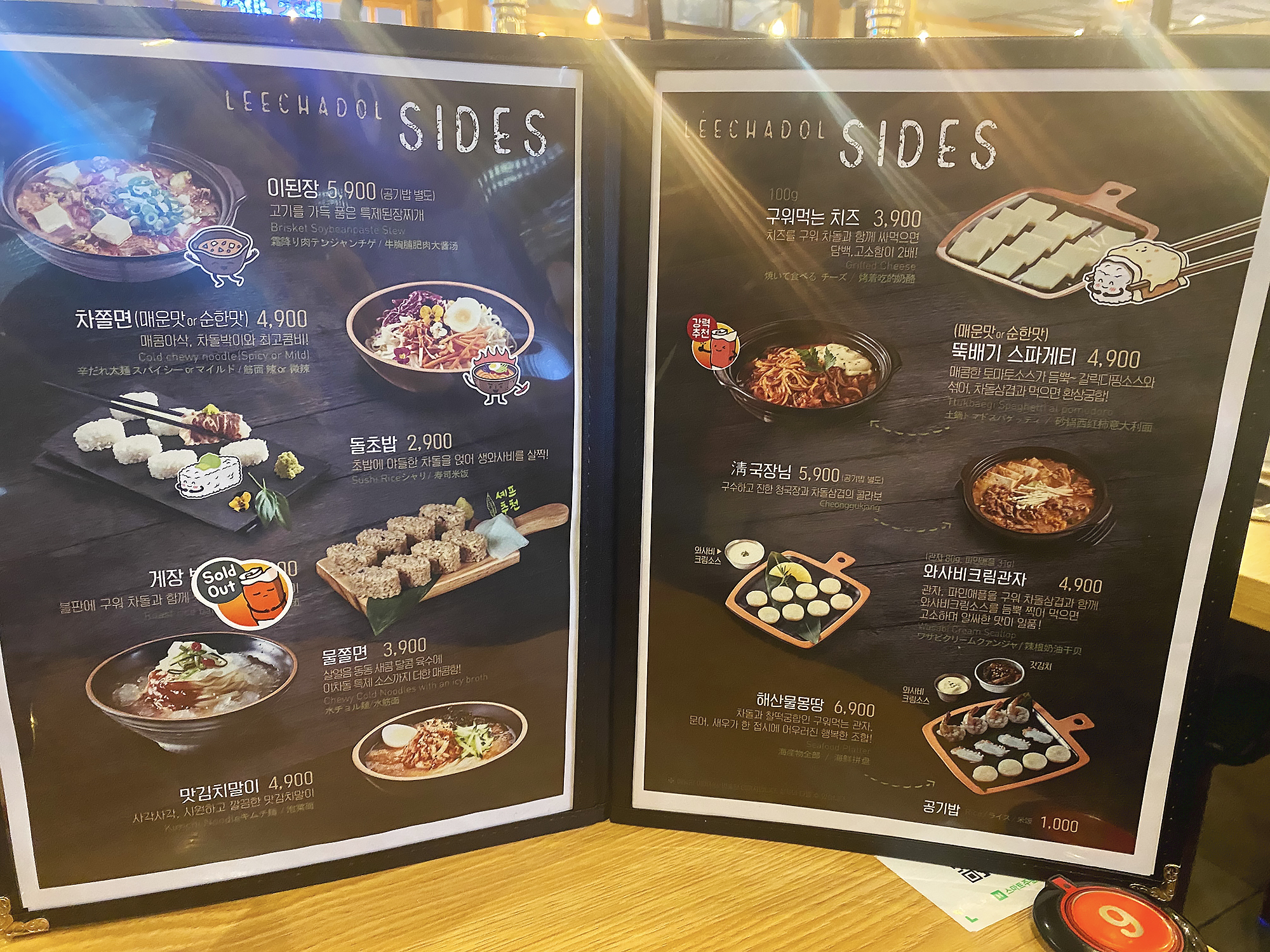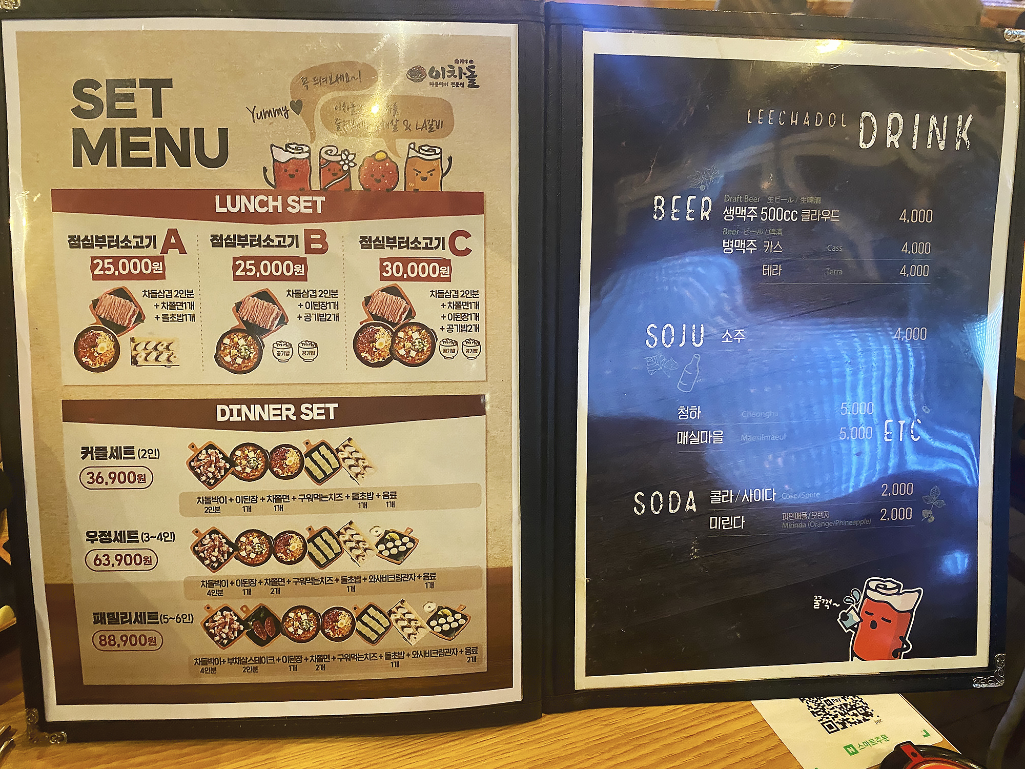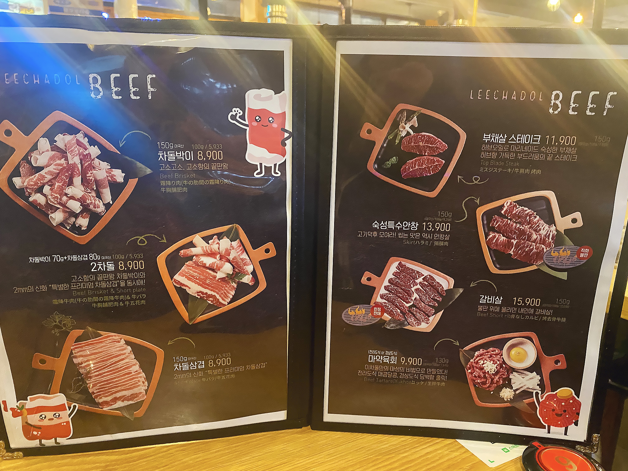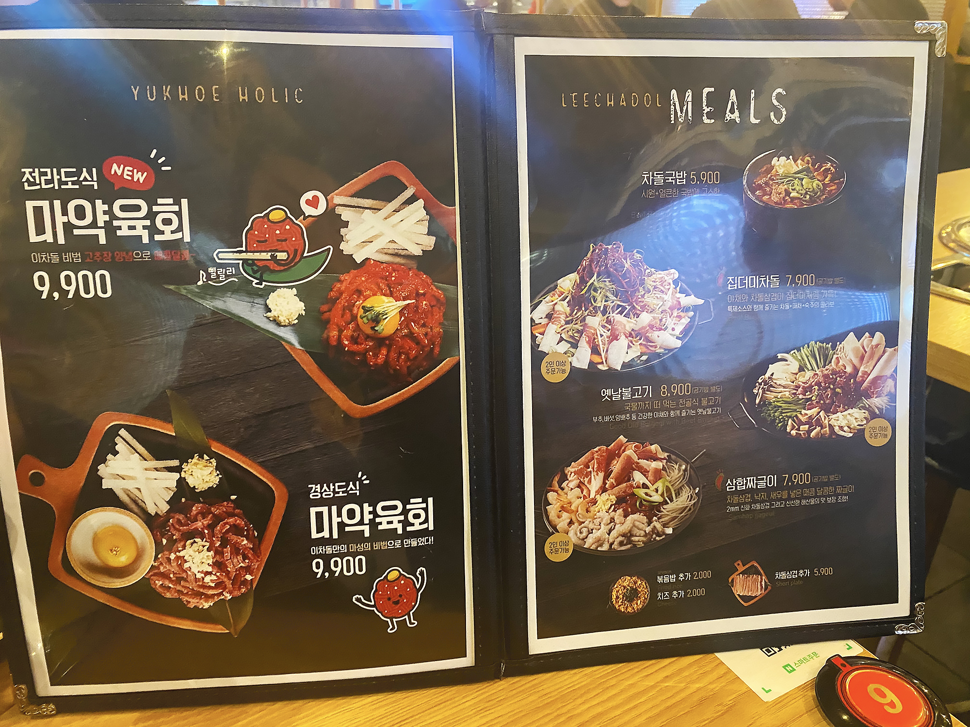 유니시티 맛집 이차돌의 메뉴판이예요.