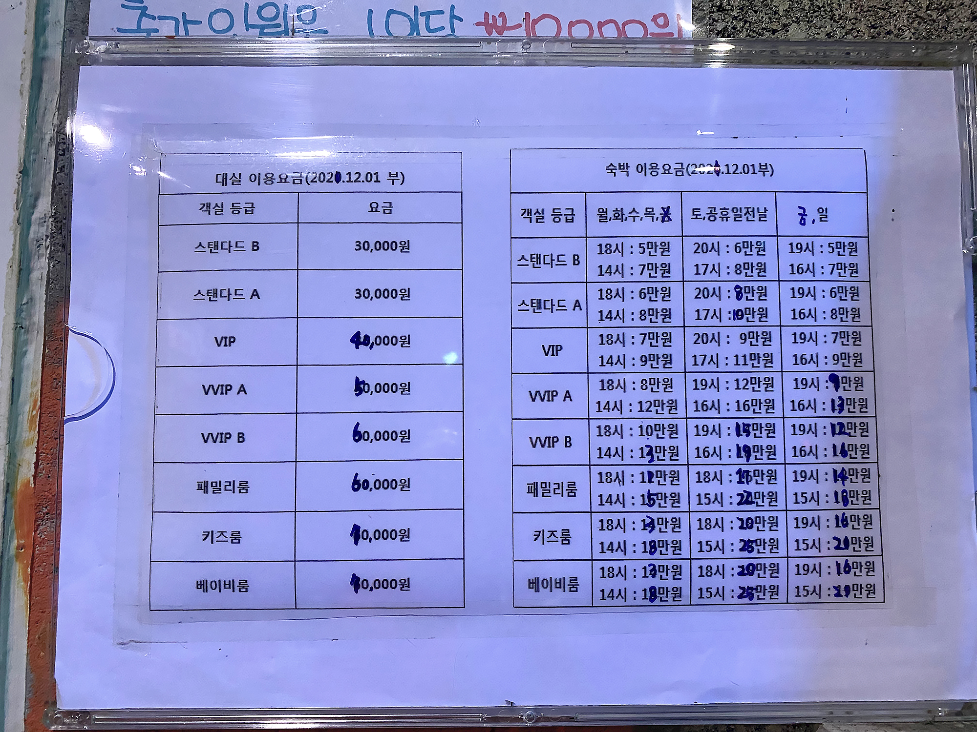 요금표