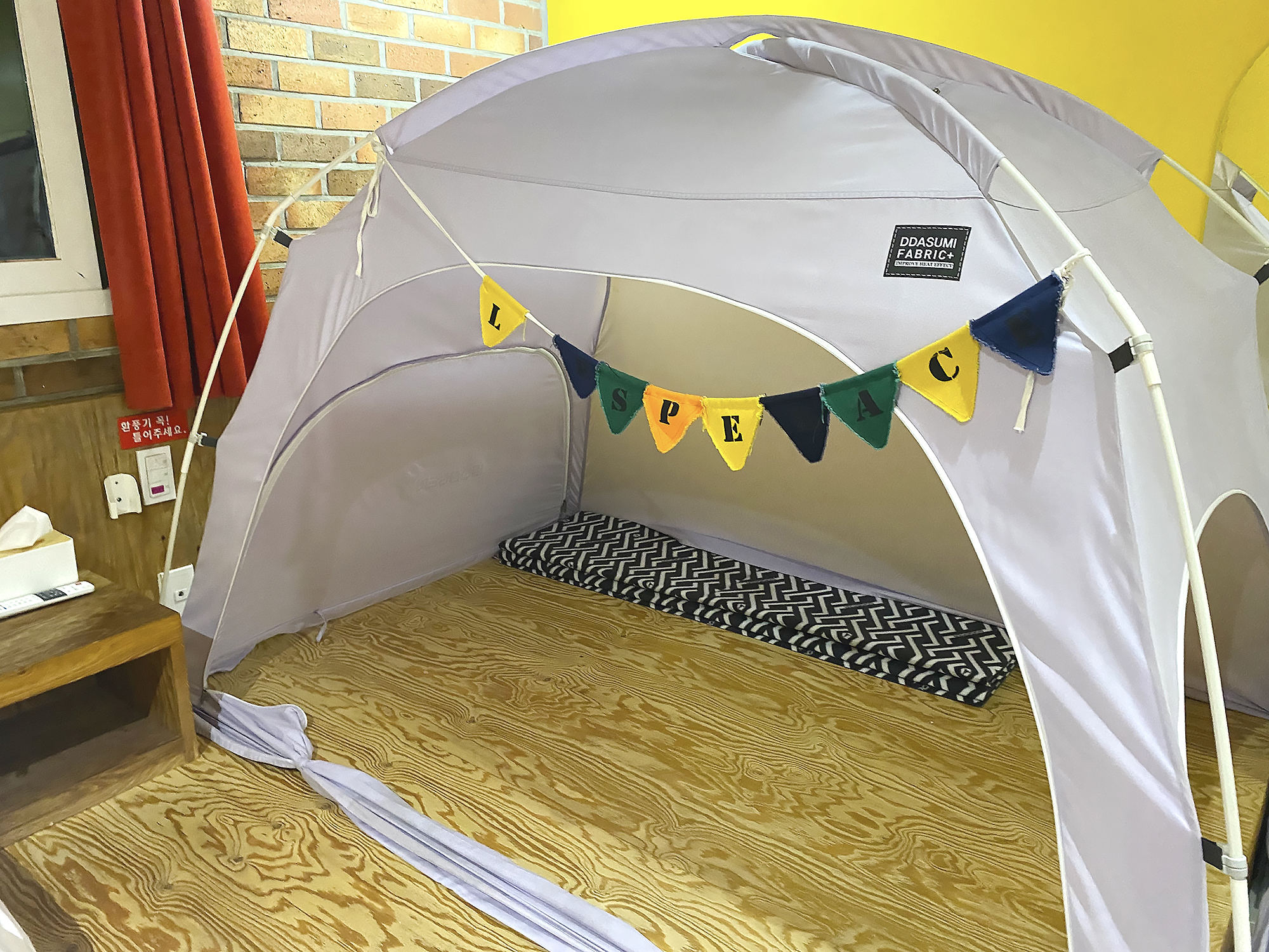 특이하게 침대가 있는 나무바닥에 텐트가 있더라구요?