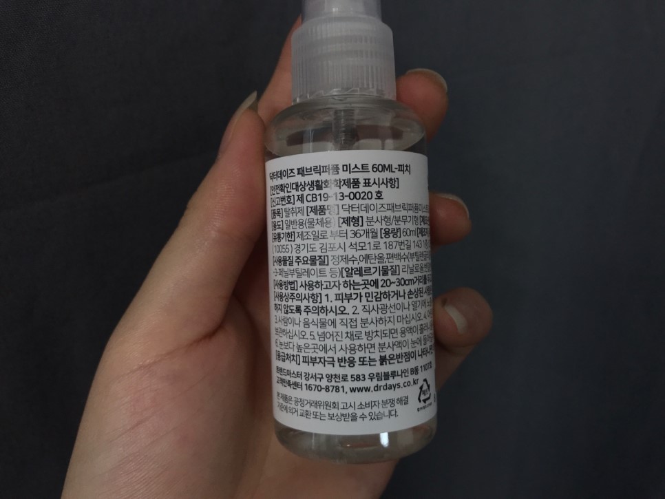 근데 요 닥터데이즈 섬유향수 제품은 미니미한 사이즈로 부담스럽지 않아요! 한손에 쏙 들어와서 출근할 때 하나씩 챙겨서 출근 중입니당ㅋㅋ