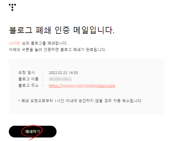 티스토리 블로그 삭제를 위한 인증메일이 발송됩니다.