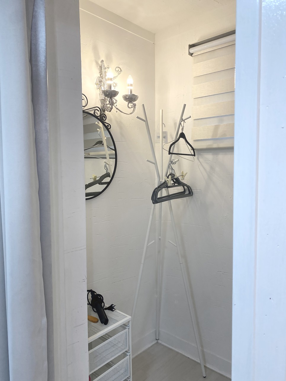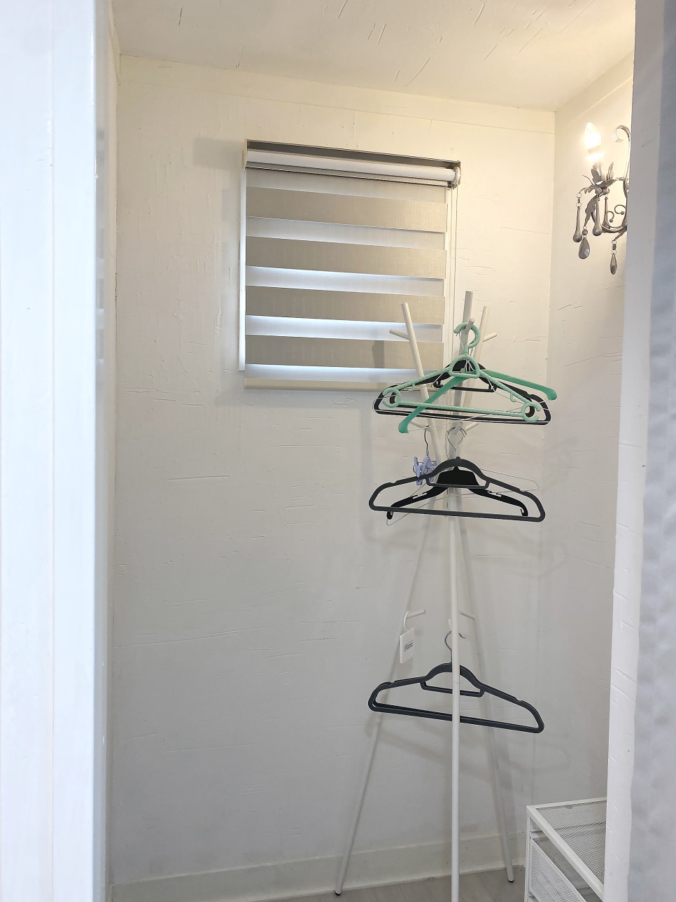 양 옆으로 외투를 걸어두는 옷걸이들과