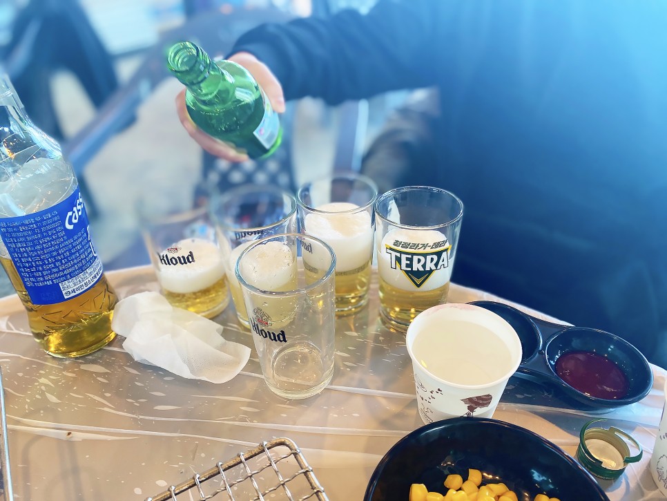 어느 정도 구워졌으면 당연히 후후 술입니다.