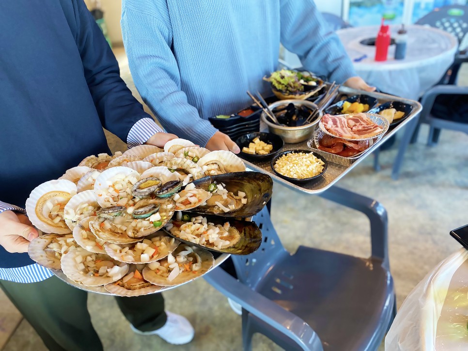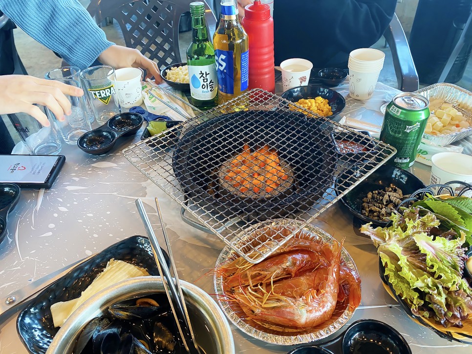 조개구이 먹으면 환상적일 것 같아요.