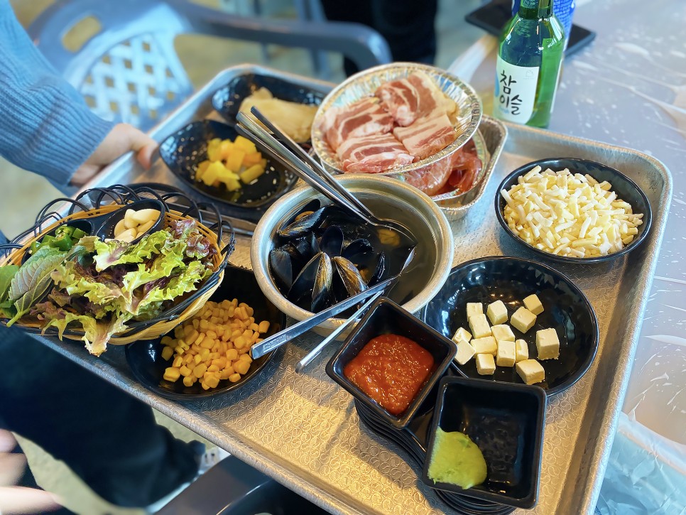 제 기억에 조개+삼겹 세트였던 것 같아요.