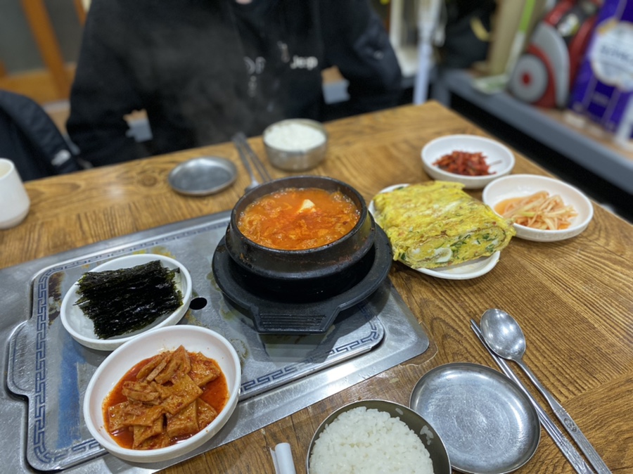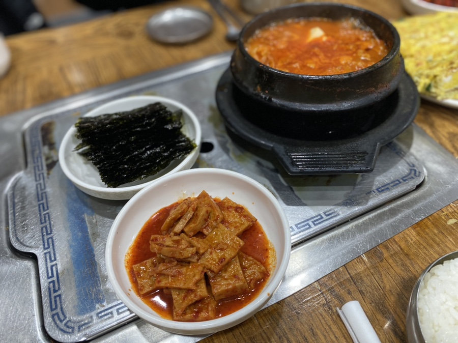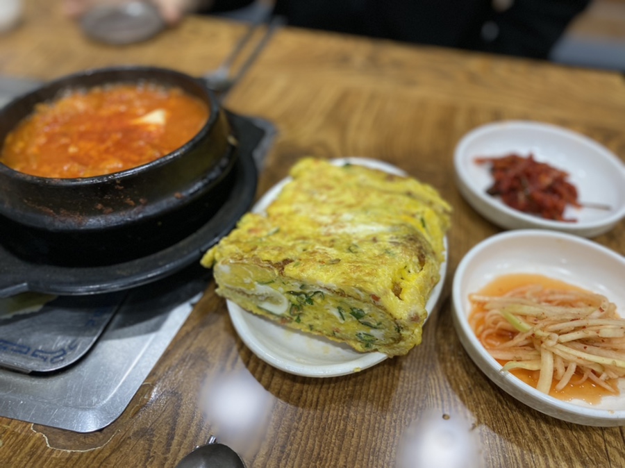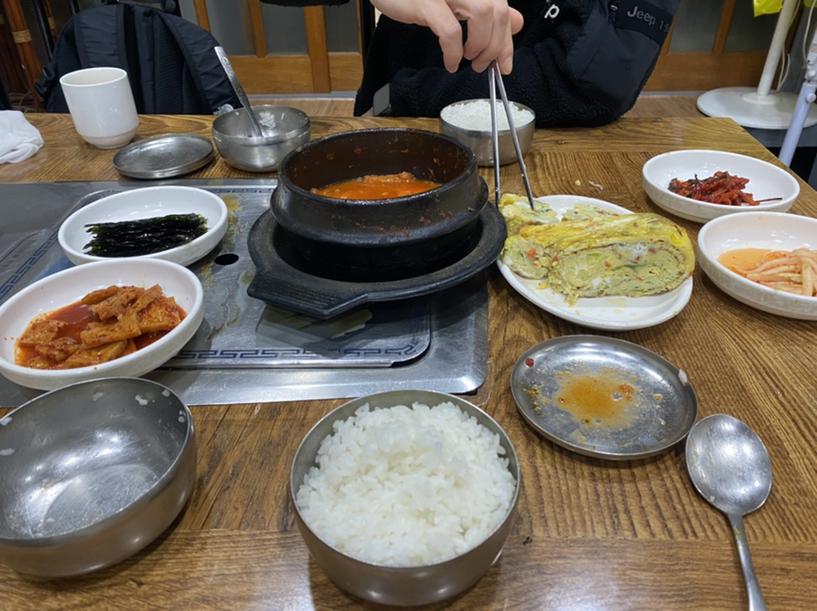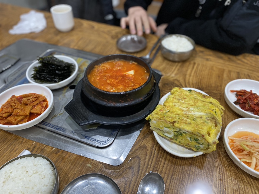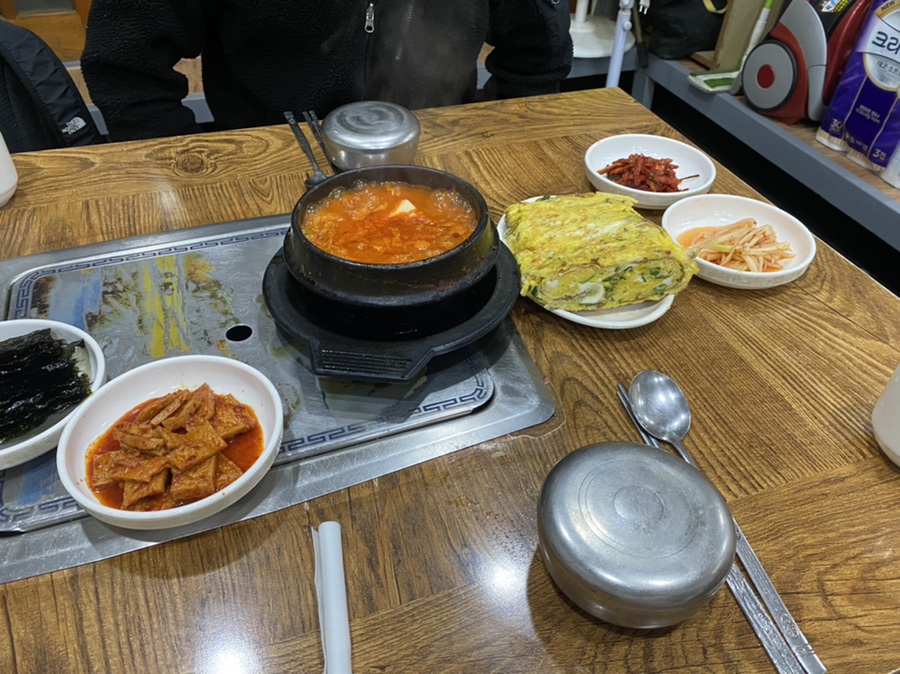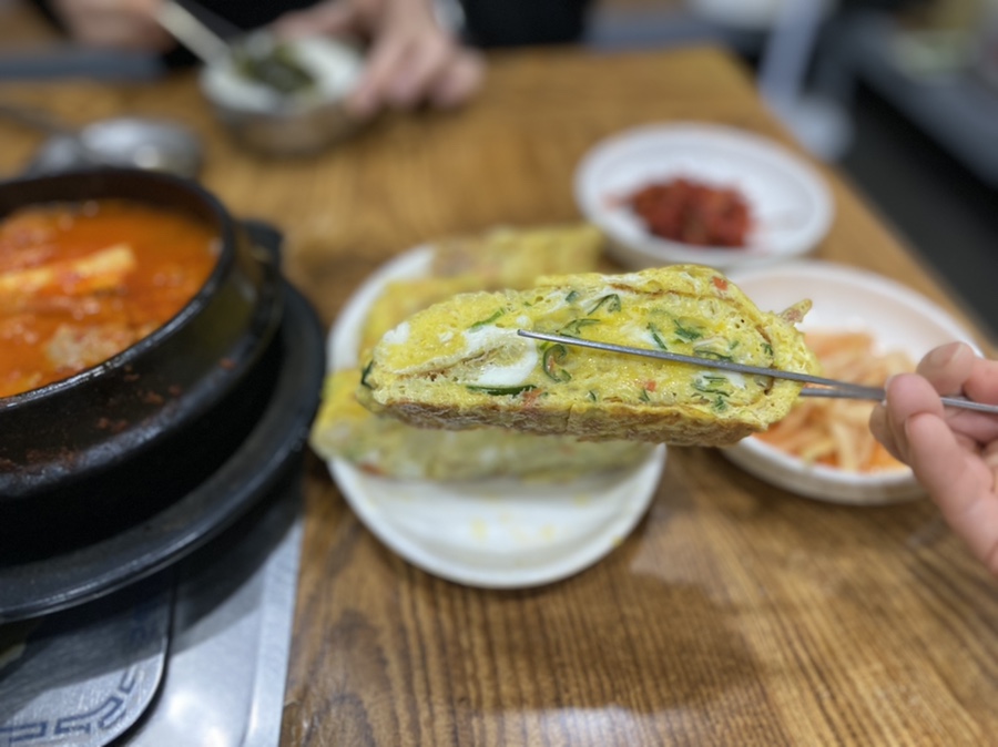 계란말이 진짜 크죠!!! 간도 잘 베어있어서 밥반찬 뚝딱임ㅠㅠ 한 입 베어물고 밥먹고 뭔가 부족하면 김치찌개 김치 건져서 입에 넣으면 세상 행복😛