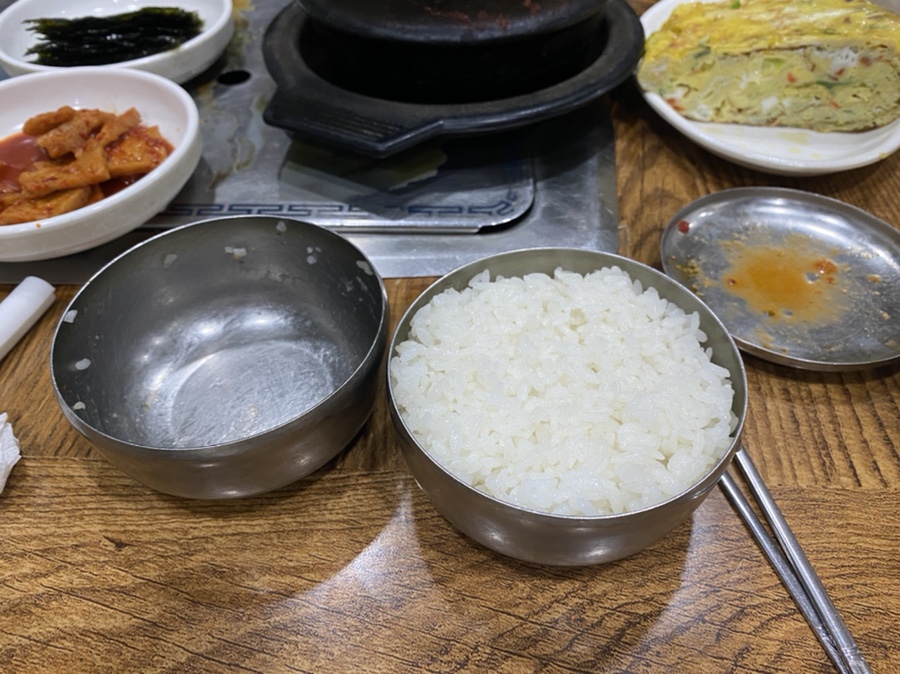 그래서 한 공기 더 시켰는데 라미가 “밥 두공기 더 주십쇼!!”하니까 사장님이 놀라시더라구요ㅋㅋㅋ 밥이 꽉꽉 눌러담은 거라서 양이 좀 많긴했어요.