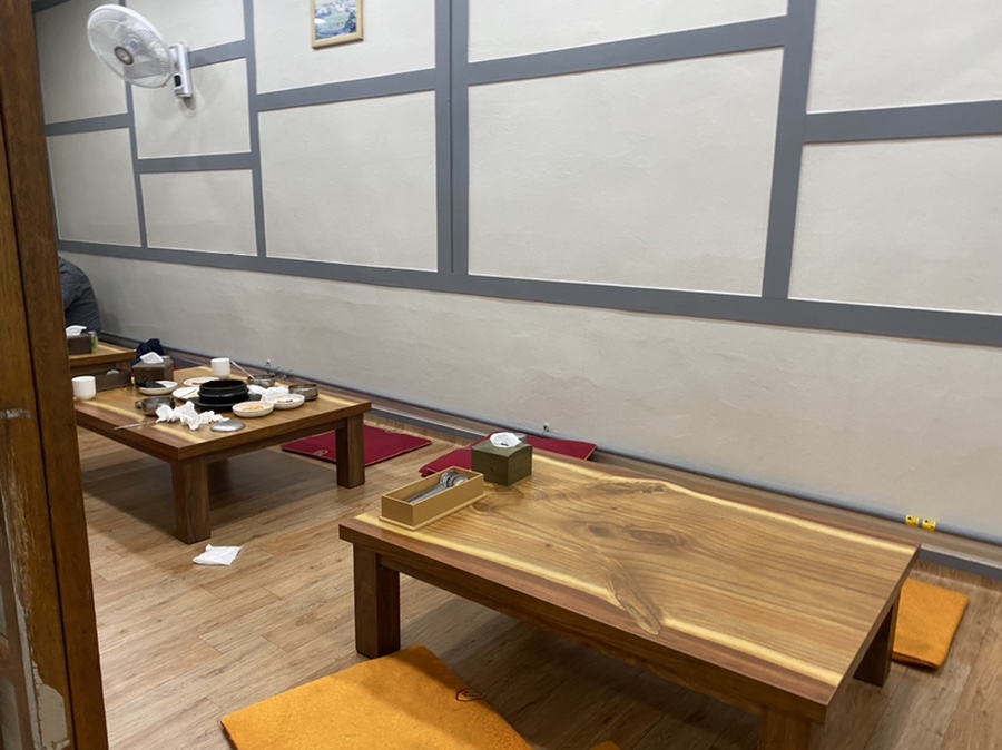 창원 중앙동 김치찌개 맛집 녹우촌은 테이블이 7~8개쯤 있었어요. 근데 늦게 가면 사람 꽉차서 못먹는다고 하네요.
